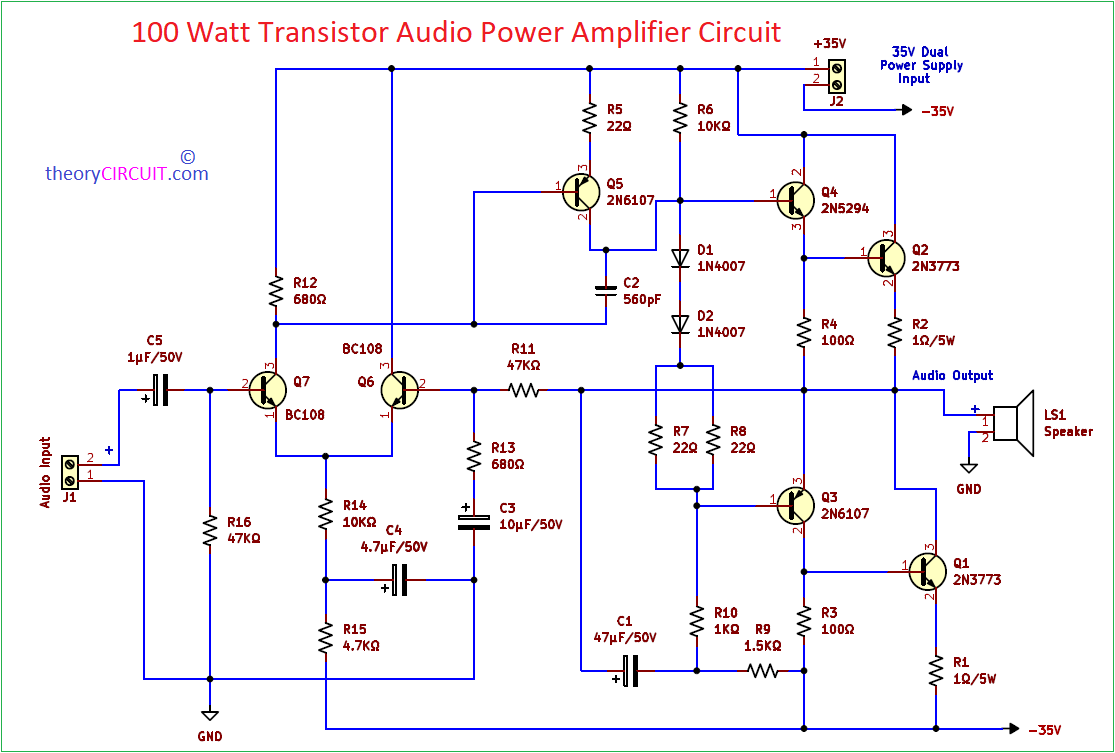 100 Watt Transistor Audio Power Amplifier Circuit - theoryCIRCUIT - Do ...