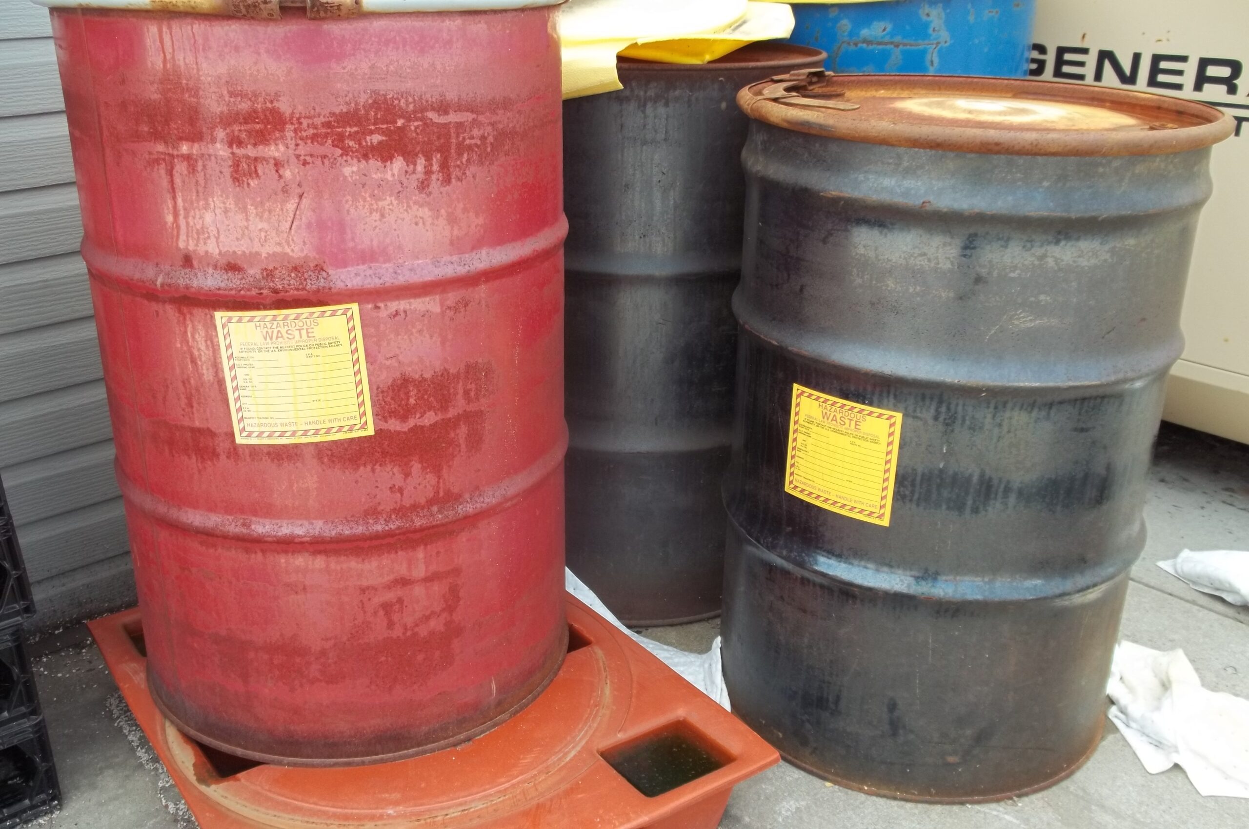 Containers with hazardous waste labels - Daniels Training Services